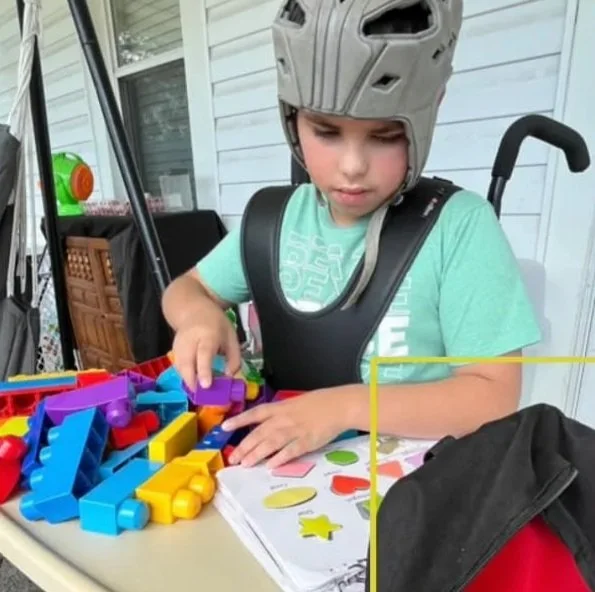 A Rifton activity chair is an adaptive seating system designed to promote proper positioning, stability, and comfort. With this equipment, Adam is better supported during school activities and able to participate more fully in play and daily routines—helping increase his engagement, independence, and overall quality of life.